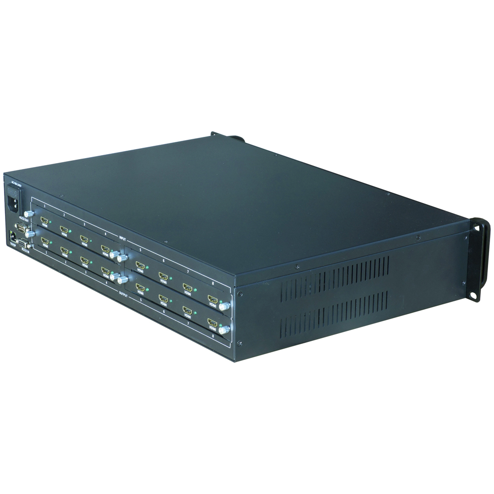 PRODUCT CENTER MKMC-0808S是一款支持多種格式信號(hào)輸入和輸出的矩陣切換器。產(chǎn)品采用插卡式設(shè)計(jì)方式,最多可以支持定制8路信號(hào)輸入以及8路信號(hào)輸出。輸入、輸出模塊采用單卡4路設(shè)計(jì)方式,輸入模塊支持HDMI、VGA、DVI、3G-SDI、AV、DP、HDBaset,輸出模塊支持HDMI、VGA、DVI、3G-SDI、AV、HDBaset。用戶根據(jù)需求搭配輸入輸出卡,實(shí)現(xiàn)兩種格式信號(hào)隨意處理得功能,并進(jìn)行高清轉(zhuǎn)換。